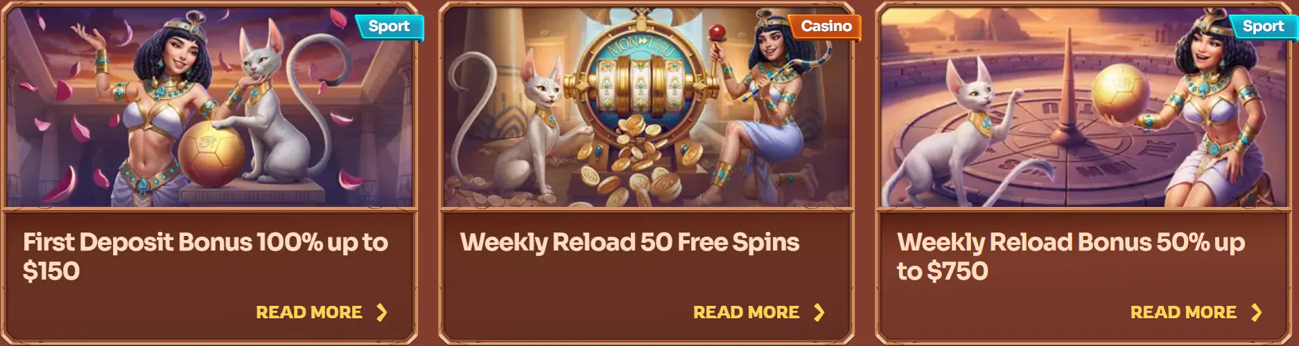 New members can start their journey with a welcome bonus worth up to AUD 1,650 + 350 free spins on Cash of Egypt. The package is credited across multiple deposits, rewarding consistent engagement with Cleobetra Casino’s slot portfolio.